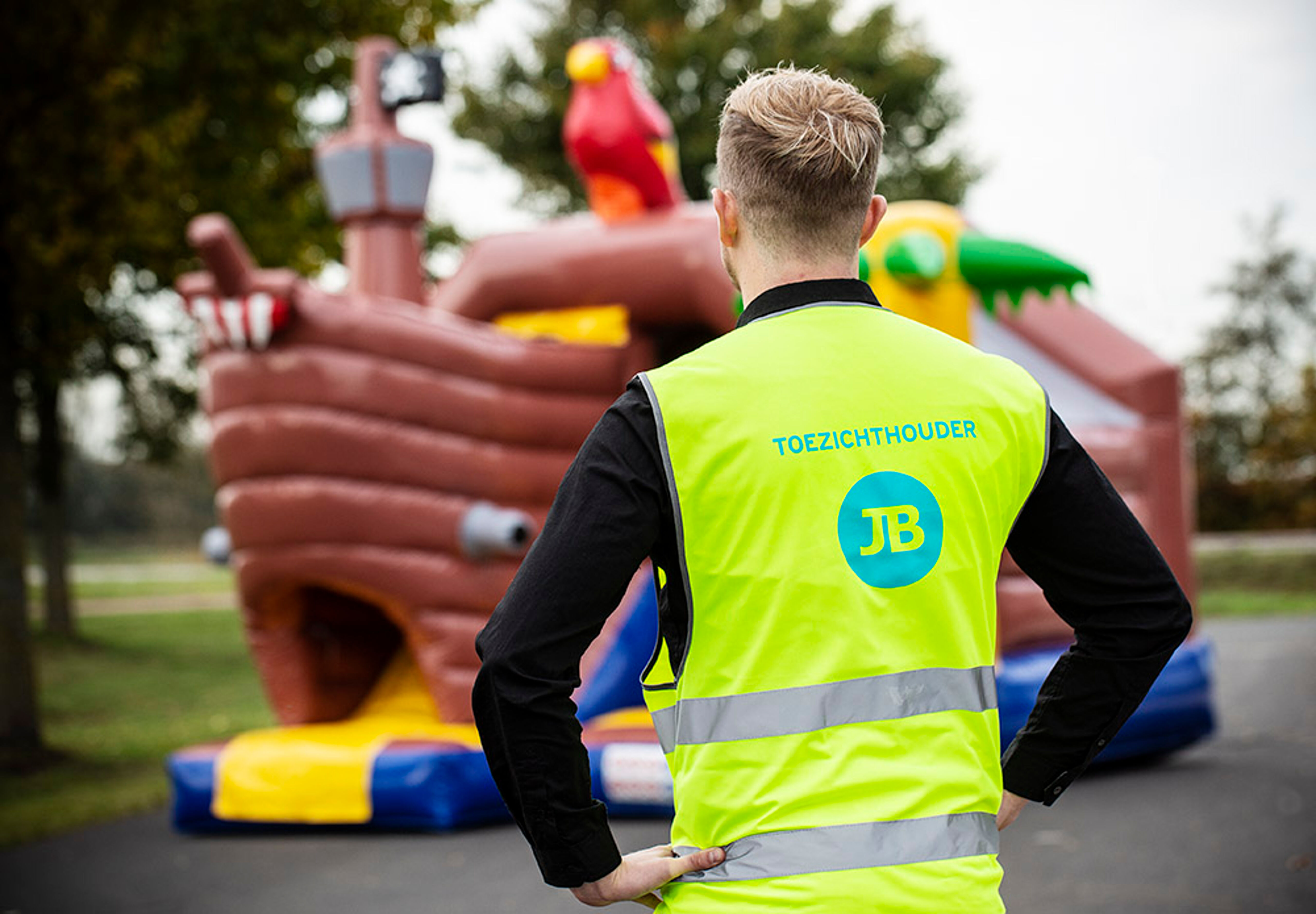 Een springkussen mag nooit onbeheerd gebruikt worden. Tijdens elk evenement moet er iemand verantwoordelijk zijn voor het toezicht op de kinderen. Deze persoon let op veilig gebruik, voorkomt overbelasting en grijpt in bij onveilige situaties. Om dit toezicht duidelijk te maken, bieden wij ook opvallende toezichthouder-vestjes aan. Deze vestjes zijn bedrukt met “Toezichthouder” en in een felle kleur uitgevoerd, zodat bezoekers direct weten wie aanspreekbaar is bij vragen of calamiteiten.